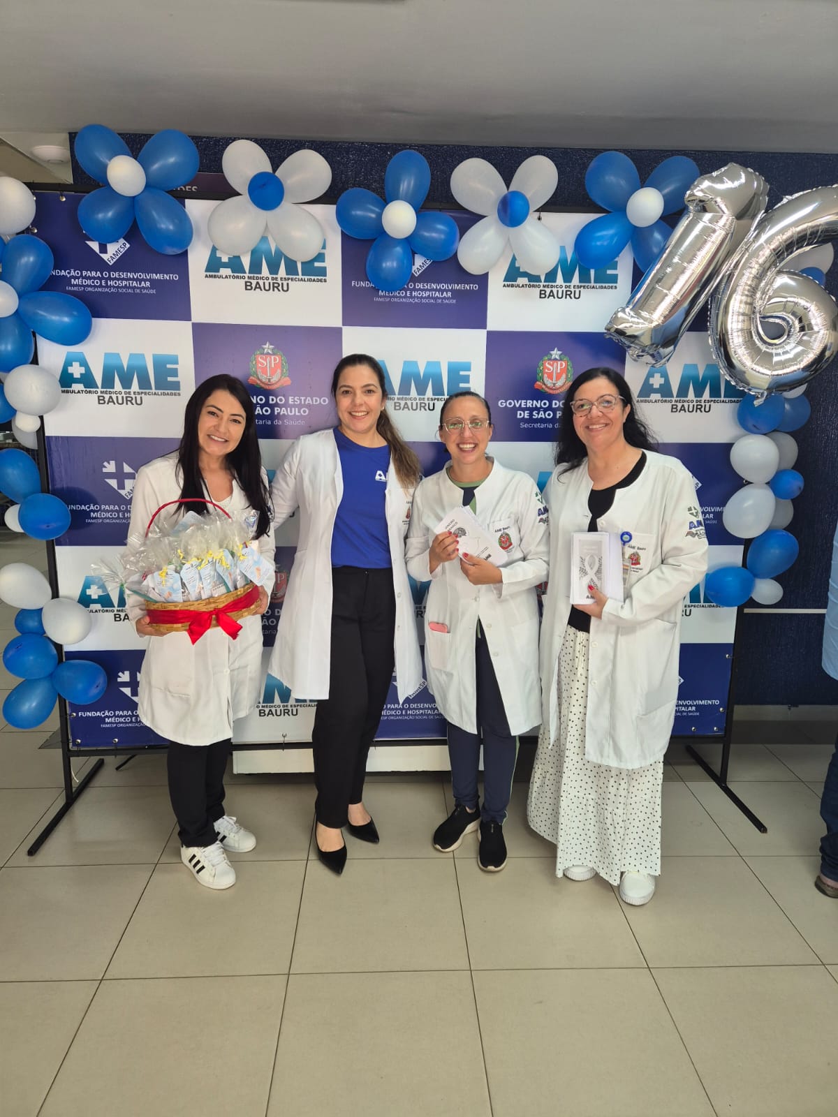 O Ambulatório Médico de Especialidades (AME) "Dr. Jair Marcelino da Silva Filho" Bauru comemora, no dia 28 de janeiro, 16 anos de atuação na promoção da saúde regional. Para marcar a data, a unidade preparou uma programação especial nos dias 28 e 29 de janeiro, com palestras, atividades educativas e apresentação musical, voltadas a pacientes e colaboradores. Confira as imagens!